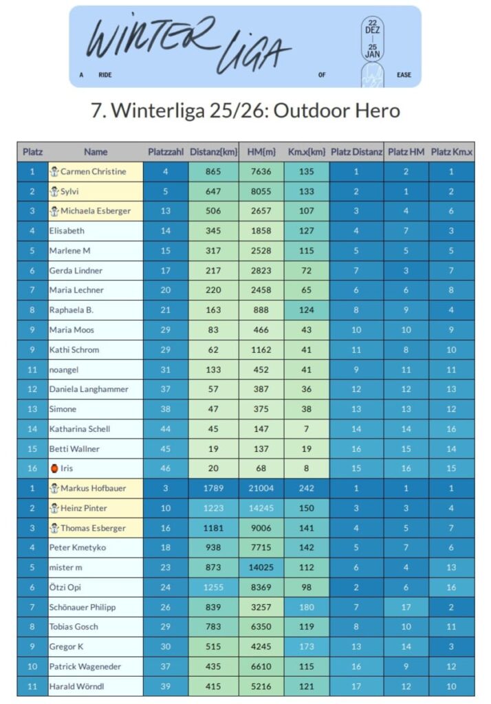 Bei der Outdoor Hero Wertung scheinen sowohl bei den Frauen als auch Männern, die ersten beiden Plätze ganz gut abgesichert, ab Platz 3 werden die Abstände aber ziemlich eng und jeder der Top 10 scheint da noch einen großen Sprung nach Vorne machen zu können. Entscheidend könnte hier wie immer die „längste Fahrt“ werden.